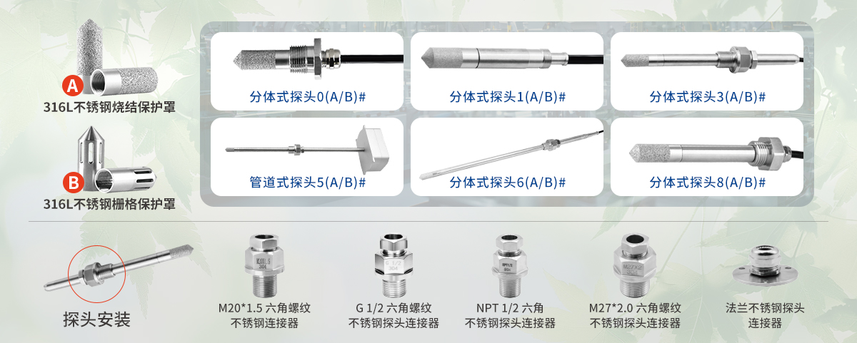 應用于冷凍式干燥機、吸附式干燥機等對濕度要求極其嚴格的工況,也可作為零部件安裝在干燥系統(tǒng)、壓縮空氣系統(tǒng)等工業(yè)應用的設備上,用以檢測氣體中的實際潮氣。